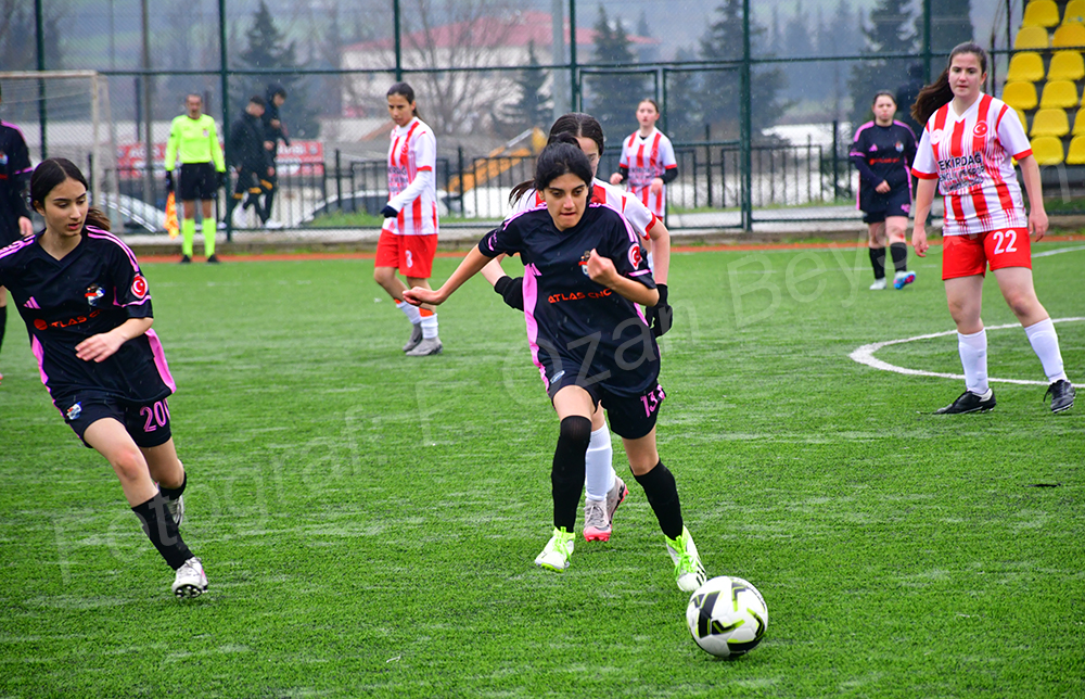 Dakikalar geçtikçe yağmur da goller gibi şiddetini artırmaya başlamış gibiydi. Nitekim 10. dakikada Müge Yaman’ın sert şutu skoru 3-0’a taşımış oldu. Keza dakikalar 15 ve 21’de ise Nilay Koca’dan peş peşe gelen 2 güzel golle skor bir anda 5-0’a geldi.